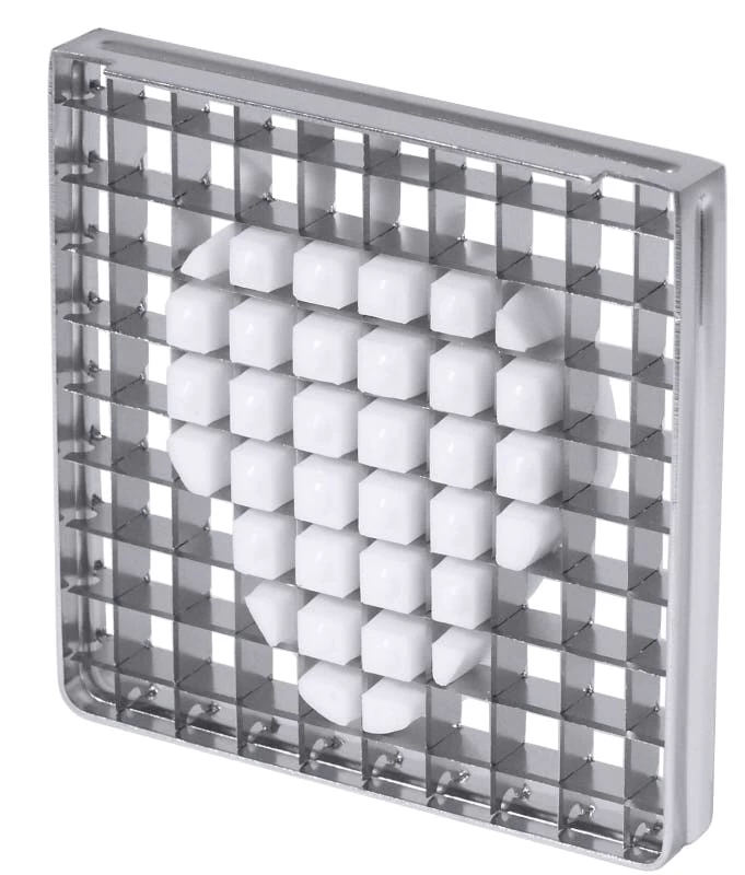 Verzinnter Schneideinsatz 10×20 mm zu Pommes frites-Schneider, ganz aus Edelstahl 18/10 (auch Bodenplatte), auswechselbare Schneideinsätze aus gehärtetem Messerstahl, spülmaschinenfest, 4 bis 5 kg Durchsatz in der Minute